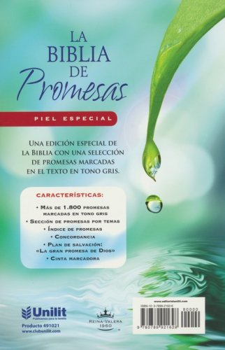 La Biblia bellamente presentada con más de 1.800 promesas marcadas en el texto en tono gris para fácil reconocimiento. Además contiene referencias, subtítulo de temas, diccionario temático con más de 850 promesas, y el Plan de Salvación, la mayor promesa de Dios para el hombre. Tamaño bolsillo. Letra 8 puntos.