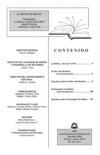 Este libro para maestros de jóvenes y adultos forma parte del programa de enseñanza bíblica: La Biblia, Libro por Libro, cuyo objetivo general es el de facilitar el estudio de todos los libros de la Biblia, durante nueve años, organizados en 52 estudios por año.