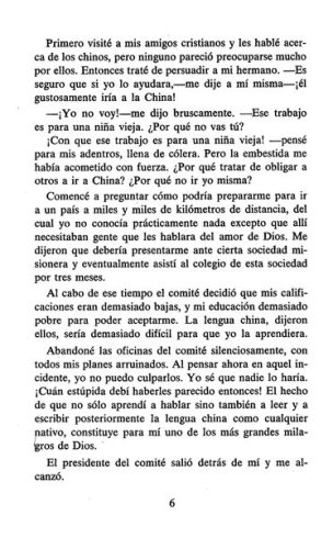 Contra el panorama de la guerra chino-japonesa de 1930, Gladys Aylward se esforzo en su trabajo para el gobierno chino y su creciente ofranatorio. Ella cuenta de incontables intervenciones de Dios en su vida diaria, asi como su deseo de hacer la voluntad del Senor a cualquier precio. Excitante, desafiante y calurosamente humana, la historia de Gladys Aylward es la biografia de una mujer que se atrevio a ser fuerte cuando se esperaba que la mujer fuera timida.