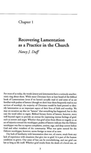 Lament, so prominent in the Christian canon, is neglected in the public worship and witness of most North American congregations. These essays by Princeton Theological Seminary faculty attest to the diverse ways in which lament is understood and practiced, and invite their recovery in all elements of the church's ministry.