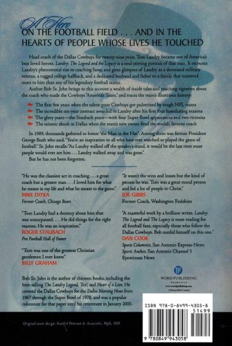 Just the mention of his name brings smiles to the faces of sports fans everywhere. Landry: The Legend and the Legacy is a tribute to the man behind the hat, the look, and the game. In rich texture, Bob St. John tells the story of a quiet kid from Mission, Texas, who grew up to be a quiet, intense, and respected man. Favorite memories of Landry are shared by others who knew him as a person and as a friend: Dan Reeves, Mike Ditka, Charlie Waters, Bob Lilly, Charles Swindoll, Roger Staubach, Drew Pearson. Pictures from throughout Landry's career and recollections from friends and fellow players help depict the man who molded lives and changed the course of football forever.