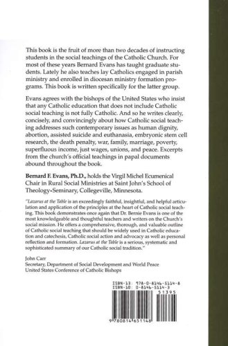 Lazarus at the Tale is the fruit of more than two decades of instructing students in the social teachings of the Catholic Church. For most of these years Bernard Evans has taught graduate students. Lately he also teaches lay Catholics engaged in parish ministry and enrolled in diocesan ministry formation programs. This book is written specifically for the latter group.
