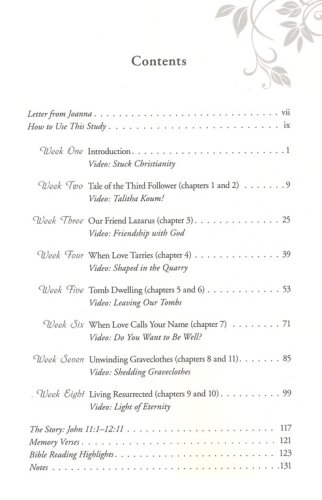 This eight-session study guide is designed for use with Joanna Weaver’s book Lazarus Awakening and the separately available DVD curriculum set, filmed on location in the Holy Land. Join Joanna as she draws you deeper into the historical and spiritual truths we learn from the story of Lazarus: a friend called out from death into the life-giving arms of Jesus.