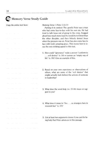 a memory verse a Bible study a reading a leadership exercise
