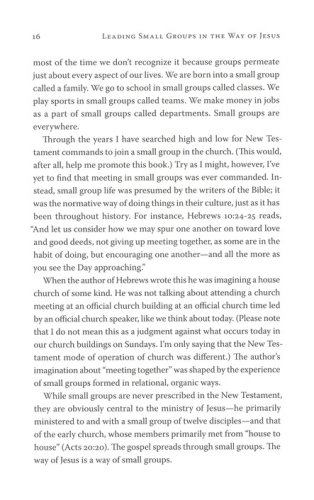 Is there any arena in the contemporary church more perplexing than small groups? Leaders and participants alike fill them with promises of unparalleled spiritual intimacy and reliable relationship. Experts put forward model after model, paradigm after paradigm, and frustrated small group leaders and followers meander from one to the next in increasingly vain hope that the next model will deliver the goods. What could be more natural than a group of people sitting together, talking? What could be more contrived than a packaged curriculum, with prefab questions and notes for leaders? Such is the problem of small groups. Scott Boren has wrestled with these challenges for years, in the context of his own small-group ministries and in consultation with churches of every stripe. In this book he reminds us that any small group, no matter how it's organized, is at its heart a collection of people each walking in the way of Jesus. That means we are going somewhere—together—and that means we have a reliable guide.