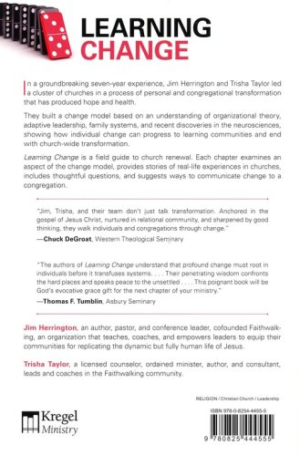 Learning Change is the pastor and congregational leaders' field guide to leading change. Each chapter provides training and information, an aspect of the learning change model, stories of real-life experiences in churches, and questions and suggestions for taking this information into a congregational context.