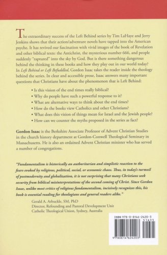 The extraordinary success of the Left Behind series by Tim LaHaye and Jerry Jenkins shows that their action/adventure novels have tapped into the American psyche. It has revived our fascination with vivid images of the book of Revelation and other biblical texts: the Antichrist, the mysterious number 666, and people suddenly raptured into the sky by God. But is there something dangerous behind the thinking in these books and how they play out in our world today? In Left Behind or Left Befuddled, Gordon Isaac takes the reader inside the theology behind the series. In clear and accessible prose, Isaac answers many important questions that Christians have about the phenomenon that is Left Behind: