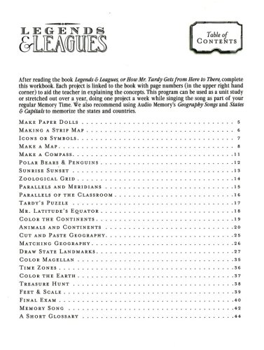 This workbook accompanies the Legends & Leagues Storybook from Vertias Press (sold-separately), and provides fun projects and exercises that reinforce the geography concepts introduced in the book. Children will complete activities such as creating a room map, making a magnetic compass, using coordinates to label cities, drawing state landmarks, and more. 44 classroom/family-reproducible pages with glossary, softcover.