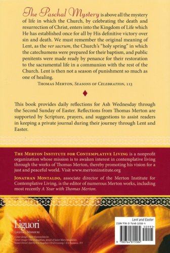 Let the words of Trappist monk Thomas Merton lead you through the holy season of Lent and into Easter. The author was known for his journaling skills. With that in mind, the daily format includes an explanation of one facet of the season, followed by Mertons' writings, appropriate Scripture passages and a daily journal topic to encourage your own thoughts related to Lent and Easter.
