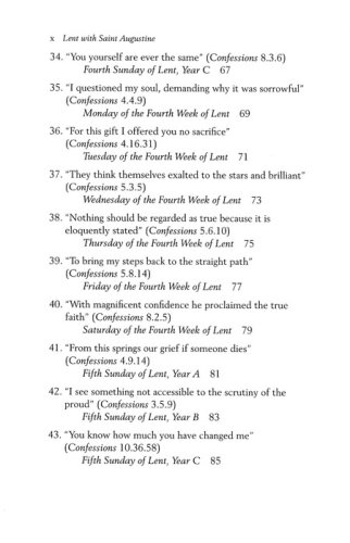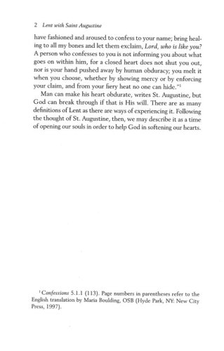 Augustine's Confessions immortalized the path of his conversion, a humble and sincere testimony of a sinner who experienced unconditional love. In Lent with Saint Augustine, Waldemar Turek presents selected excerpts for each day of Lent from this pearl of spirituality and literature, while incorporating commentary that takes the cycle of liturgical readings into account. These reflections serve as a prayerful aid for living Lent spiritually, allowing the reader to better experience the sacred while returning to the sources of faith to celebrate the death and resurrection of Christ.