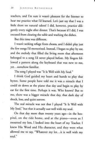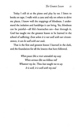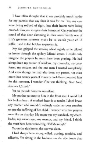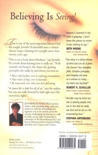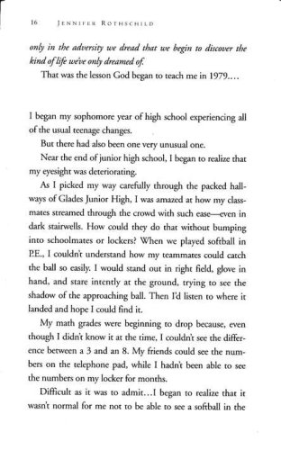 At the age of fifteen, Jennifer Rothschild confronted two unshakable realities: Blindness is inevitable … and God is enough. Now this popular author, speaker, and recording artist offers poignant lessons that illuminate a path to freedom and fulfillment. With warmth, humor, and insight,Jennifer shares the guiding principles she walks by — and shows you how to walk forward by faith into God's marvelous light.