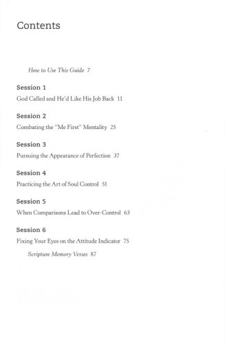 God Called and He’d Like His Job BackCombating the "Me First" MentalityPursuing the Appearance of PerfectionPracticing the Art of Soul ControlWhen Comparisons Lead to Over-ControlFixing Your Eyes on the Attitude Indicator