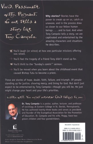 Why stories? Stories have the power to sneak up on us, catch us unaware, and in the process draw us closer to our fellow human beings . . . and to God. And when Tony Campolo tells a story, we are captivated and entertained by the amazing characters and situations he describes.
