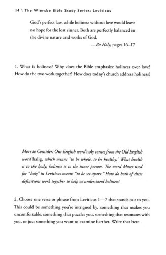 The Wiersbe Bible Study Series delivers practical, in-depth guides to selected books of the Bible. Featuring insights from Dr. Warren W. Wiersbe’s Be Holy commentary, this eight-week study includes engaging questions and practical applications that will help you connect God’s Word with your life.