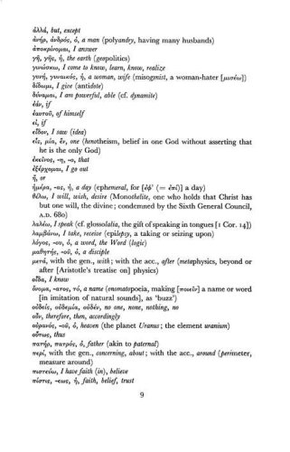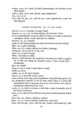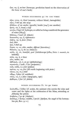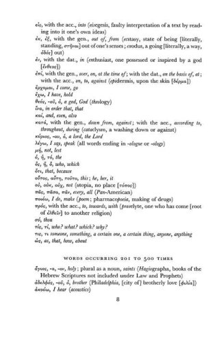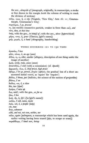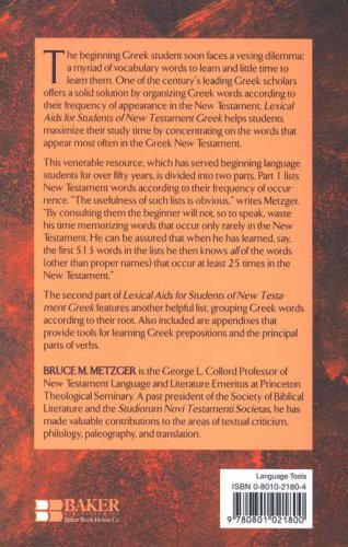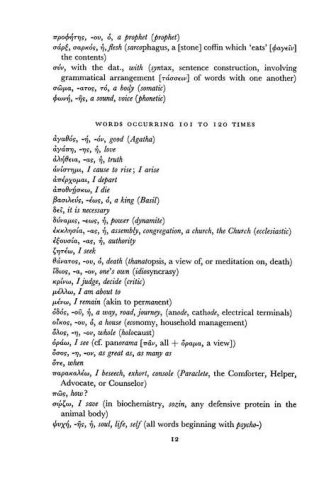 The beginning Greek student faces a vexing dilemma: a myriad of vocabulary words to learn and little time to learn them. One of the century's leading Greek scholars offers a solid solution by organizing Greek words according to their frequency of appearance in the New Testament. This text helps students maximize their study by concentrating on the words that appear most often in the Greek New Testament. (67)