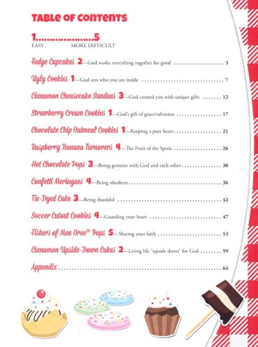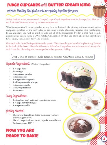 Designed for girls and boys ages 6 and up, these 12 lessons feature a recipe complete with a photo guide that is easy enough for even the newest bakers to follow! With each recipe, a devotional is provided which the teacher an incorporate during the baking process, or can read with the kids while the goodies cool. The cooking lessons feature general themes, along with scriptures, that will help children grow and develop a Christ -like character.