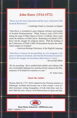 A spiritually insighful biography of Scotland's Reformer by one of its most respected historians. McCrie, a Scottish historian and divine, devoted himself to investigations into the history, constitution and policy of the churches of the Reformation. The first-fruits of his study were given to the public in November 1811 as the Life of John Knox, which contains illustrations of the history of the Reformation in Scotland. This work exercised an important influence on public opinion at the time and is credited by many as (along with other important works of the era) transforming Edinburgh and Scotland by making active, believing Christianity acceptable to the upper classes, and available to all.