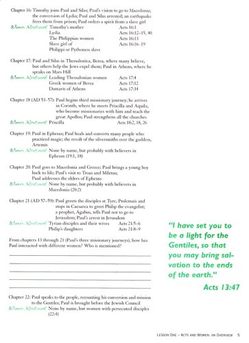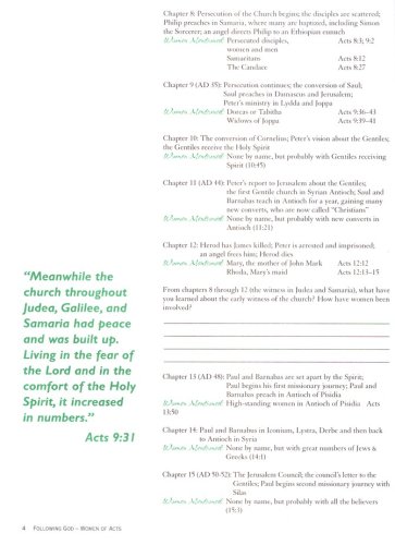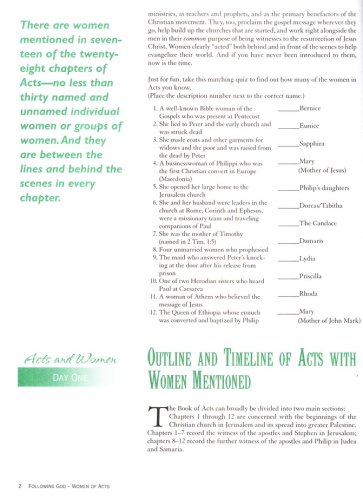 Life principles from the Women of Acts is a twelve-week Following God Bible study examining in detail the stories of the women  who helped start the Christian church.