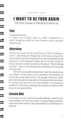 This curriculum will place you on a forward path of biblical principles. Don’t waste another day in what some call a “perpetual state of limbo!” Discover the true rewards of living God’s purpose and embracing the challenges of adulthood.