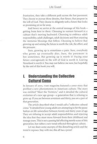 Whether you are thirty-something wondering where the last fifteen years went, twenty-something in search of your true purpose, or a late teen preparing to enter adult life, Life Quest is a guide to braving adulthood with biblical passion. Sociologists and psychologists of our day are documenting a huge societal problem – people have stopped growing up! We are addicted to staying immature and irresponsible. We seek immediate gratification and the path of least resistance and we’re paying a very high price!