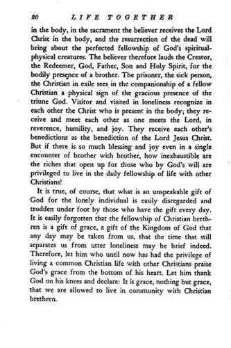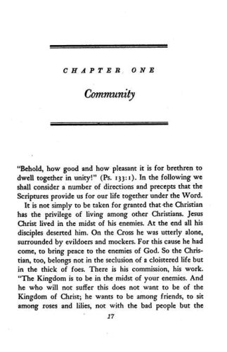 In Life Together, Dietrich Bonhoeffer, renowned Christian minister, professor, and author of The Cost of Discipleship recounts his unique fellowship in an underground seminary during the Nazi years in Germany. Giving practical advice on how life together in Christ can be sustained in families and groups, Life Together is bread for all who are hungry for the real life of Christian fellowship.