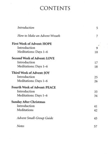 This Advent book invites readers to commit to the practice of daily prayer. The collection of meditations from The Upper Room daily devotional guide is arranged to coordinate with the themes of the four candles on an Advent wreath: Hope, Love, Joy, and Peace. Meditations are included for Christmas Eve, Christmas Day, and the Sunday after Christmas. A complete Leader's Guide for small groups and instructions for making an Advent wreath are included.