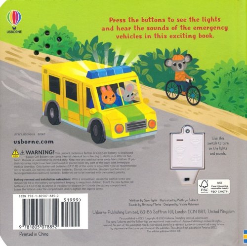 Little children will love pressing each button in this exciting novelty book to see the lights and hear the sounds of all the different emergency vehicles. From fire trucks and ambulances to helicopters and coast guard boats, each charmingly illustrated scene is full of busy vehicles to enjoy.