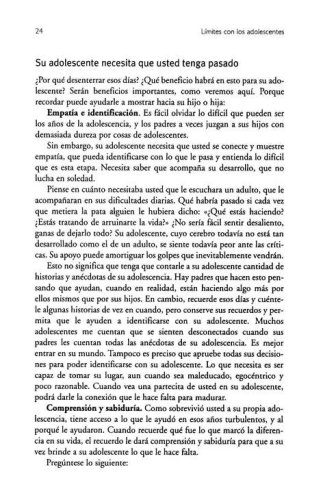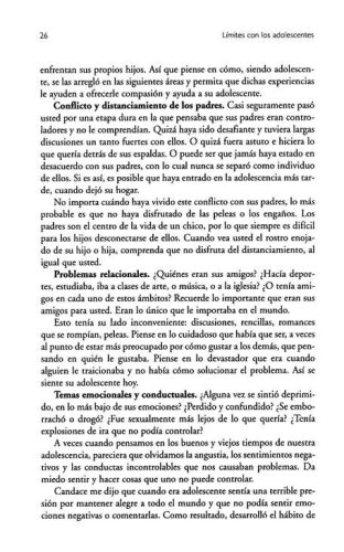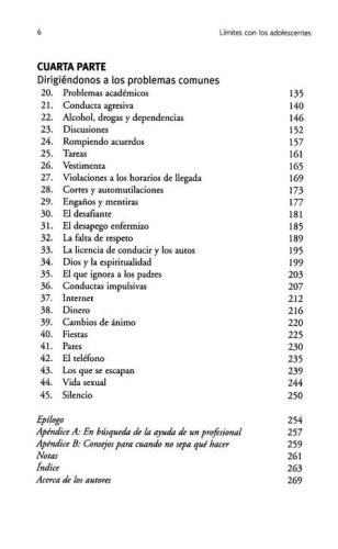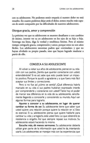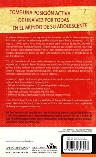 Adopte una posición activa de una vez portodas en el mundo de su adolescente.¡Relájese! Su cordura sobrevivirá a estos complicados años de la adolescencia, y de la misma forma sus hijos, siempre y cuando usted determine límites saludables que trabajen en beneficio de ellos y de usted mismo. Límites con los adolescentes le enseña cómo hacerlo.El Dr. John Townsend, autor de libros de éxitos en ventas y consejero, comparte su experimentada perspicacia y le brinda la guía que usted necesita a fin de ayudar a sus adolescentes a ser responsables con sus acciones, actitudes y emociones, así como también a adquirir una apreciación y un respeto más profundos, tanto por usted como por ellos mismos. Con sabiduría, el Dr. Townsend aplica principios de base espiritual para la tarea y el desafío de guiar a los hijos a través de su adolescencia. Nos muestra cómo:? Enfrentar las actitudes irrespetuosas y la conducta imposible de su adolescente.? Establecer límites saludables y consecuencias realistas.? Ser amorosos y afectuosos mientras se establecen reglas.? Determinar estrategias específicas para manejar problemas grandes y pequeños.En este libro, usted aprenderá las técnicas y habilidades sencillas que todo padre de adolecentes necesita conocer: saber cuándo decir que sí, cómo decir que no. O sea, cómo implementar y hacer cumplir límites saludables y amorosos para sus hijos adolescentes.