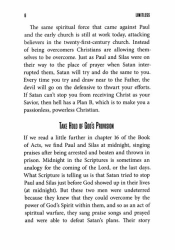 Let go of the baggage and overcome the limits of your past once and for allBlock the enemy’s access into your life and cancel his assignments to limit youRevive your prayer life and worship times through new levels of intimacy with GodActivate your faith to stop merely talking about miracles and start experiencing themDream God-sized dreams, determine not to become satisfied, and decide to go to the next level in your walk with God