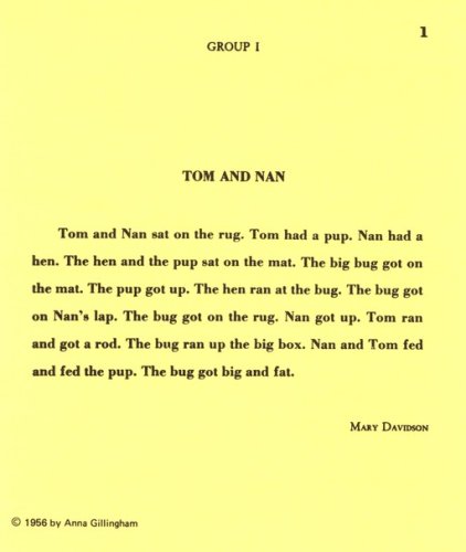Group I: 2 booklets, Tom and Jip and Fat Sam Group II:1 booklet, Ted and Kip Group III 1 booklet containing 2 stories, Jake and Kate and Sam and Jane Group IV 3 booklets, The Little Red Hen, Much Fun, and Tim Tadpole A set of yellow cards (7" x 6") with additional short stories is also included, and may be used for fluency practice. They're especially useful for struggling readers or those students with language-based learning disabilities, and are also labeled with group numbers.