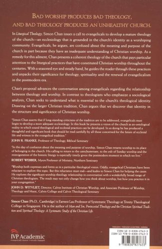 Bad worship produces bad theology, and bad theology produces an unhealthy church. In Liturgical Theology, Simon Chan issues a call to evangelicals to develop a mature theology of the church–an ecclesiology that is grounded in the church's identity as a worshiping community. Evangelicals, he argues, are confused about the meaning and purpose of the church in part because they have an inadequate understanding of Christian worship. As a remedy for this ailment, Chan presents a coherent theology of the church that pays particular attention to the liturgical practices that have constituted Christian worship throughout the centuries. With a seasoned eye and steady hand, he guides the reader through these practices and unpacks their significance for theology, spirituality and the renewal of evangelicalism in the postmodern era. Chan's proposal advances the conversation among evangelicals regarding the relationship between theology and worship. In contrast to some theologians who have tended to emphasize a sociological analysis, Chan argues that we need to consider what is essential to the church's theological identity. Drawing on the larger Christian tradition, Chan argues that we discover that identity primarily in the structure and significance of Christian worship.