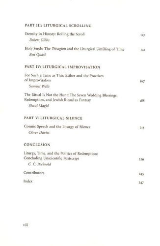 Many theologians contend that liturgical texts and rituals have important implications for our public life together. Liturgy, Time, and the Politics of Redemption advances a timely conversation about the place of "religious reasoning" in public discourse by attending to the way the scriptures are liturgically performed in Jewish and Christian communities. It includes diverse examinations of liturgy — of interest to theologians, philosophers, and clergy — and brings Jewish and Christian thinkers into conversation, showing parallels in these traditions' liturgical reasoning and opening new possibilities for Jewish-Christian relations.