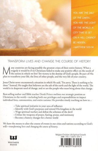Best-selling author and Bible teacher Derek Prince outlines our strategic position as Christians in the world—including both our privileges and responsibilities to impact individual lives, communities, and entire nations. He provides timely teaching on how to…Take spiritual initiative in your area of influenceIdentify with God’s purposes and extend His kingdom in the worldWage spiritual warfare and defeat the schemes of the devilUtilize the weapons of prayer, fasting, praise, and testimonyBecome a history changer for a better worldWe have the means to alter the course of events in our cities and nations according to God’s will—transforming lives and changing the course of history.