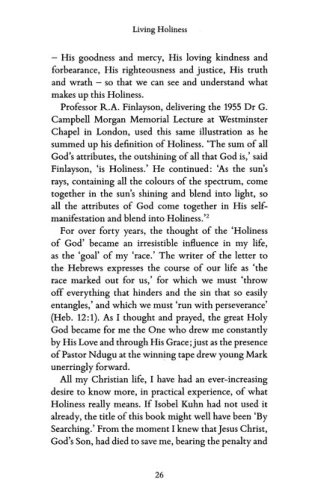 With deep humility, she shares with the reader her faltering steps in the process of learning what it means to be holy as God is holy. She tells others stories of how God leads His people to be more holy.