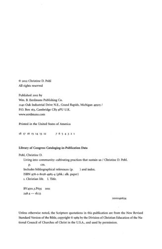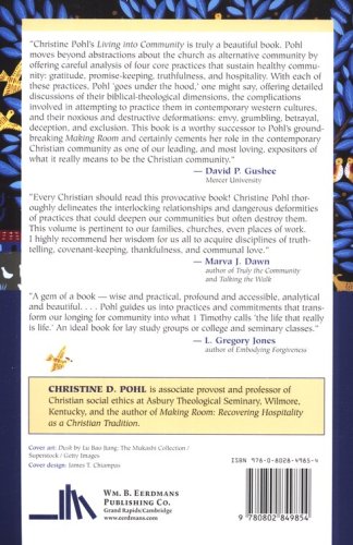 In Living into Community Christine Pohl explores four specific Christian practices — gratitude, promise-keeping, truth-telling, and hospitality — that can counteract those destructive forces and help churches and individuals build and sustain vibrant communities. Drawing on a wealth of personal and professional experience and interacting with the biblical, historical, and moral traditions, Pohl thoughtfully discusses each practice, including its possible complications and deformations, and points to how these essential practices can be better cultivated within communities and families.