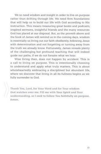 In a culture of uncertainty, it becomes increasingly imperative that we keep God at the heart of everything we do. James' letter to the Early Church pulls no punches – a crash-course in bold, brave faith that flies in the face of a hostile culture. And two thousand years later, James' guide to living on purpose is every bit as applicable. So how can we really go for it in living for Jesus – abiding, loving, serving and growing on purpose?