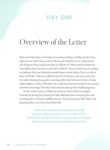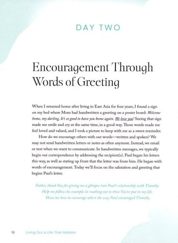 In this 8-week study on 2 Timothy, Crickett Keeth shares a beautiful pathway to a life that goes deeper in Christ. When Paul discipled Timothy, he modeled how to live a life of eternal significance. Living Out a Life that Matters focuses on eight virtues embodied by Paul that are intended for all Christians looking to grow and mature. Crickett takes us on a journey into the life-changing attributes of: Encouragement, Faithfulness, Strength, Diligence, Vigilance, Equipping, Commitment, and Steadfastness.
