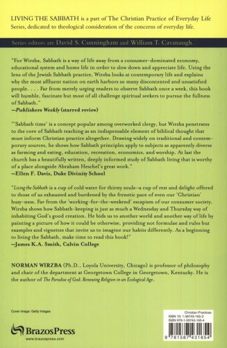 Sabbath is one day a week when we should rest from our otherwise harried lives, right? In Living the Sabbath, Norman Wirzba leads us to a much more holistic and rewarding understanding of Sabbath-keeping. Wirzba shows how Sabbath is ultimately about delight in the goodness that God has made–in everything we do, every day of the week. With practical examples, Wirzba unpacks what that means for our daily lives at work, in our homes, in our economies, in school, in our treatment of creation, and in church. This book will appeal to clergy and laypeople alike and to all who are seeking ways to discover the transformative power of Sabbath in their lives today.