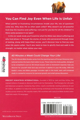 In this six week study you’ll examine what the Bible says about suffering and why God allows it. Through the stories of many who persevered through times of testing, you’ll discover how to find joy even when life seems unfair. You’ll learn how to handle loss while glorifying God in the midst of your pain. And you’ll find the peace that comes from trusting in the One whose strength is made perfect in your weakness.