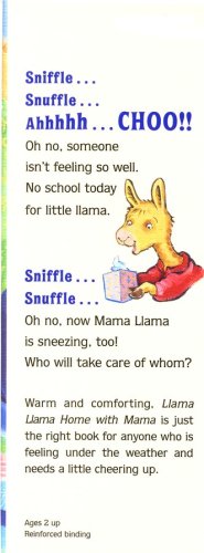 Ah-choo! Uh-oh, Llama Llama's nose is feeling tickly, his throat is feeling scratchy, and his head is feeling stuffy. Back to bed, no school today for Llama Llama! Instead, he's home with Mama. By lunchtime, though, he's beginning to feel a tiny bit better. But now someone else has the sneezes . . . Mama! And who will help her feel better? Why, Llama Llama, of course! Anna Dewdney's fun-to-read rhymes are sure to help children and their parents get through those under-the-weather days.