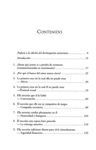 For more than twenty years, couples have been turning to the bestselling book His Needs, Her Needs for insights on how to make their marriages work–and keep them working. Now, with a new Spanish edition, His Needs, Her Needs is poised to expand its considerable influence to Spanish-speaking couples around the world.
