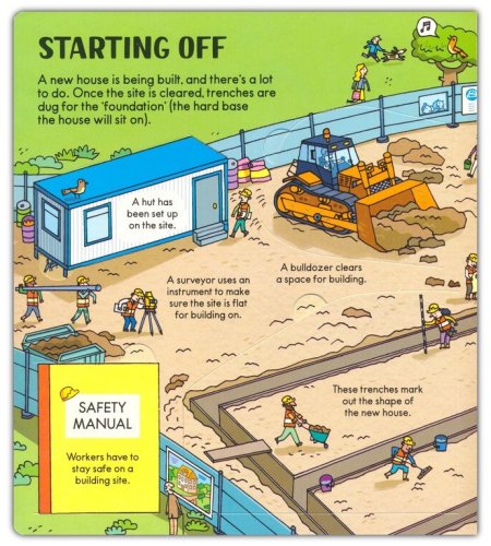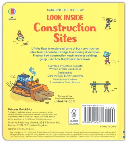 Look Inside Construction Sites by Rob Lloyd Jones and Stefano Tognetti, is an exciting, interactive book that lets kids explore the world of construction. With flaps to lift, young readers will discover how buildings, bridges, and skyscrapers are built-and demolished! Learn about the machines and jobs involved in construction. Perfect for ages 5+, this book offers a hands-on introduction to the fascinating world of construction sites. Hardcover, 14 pages.