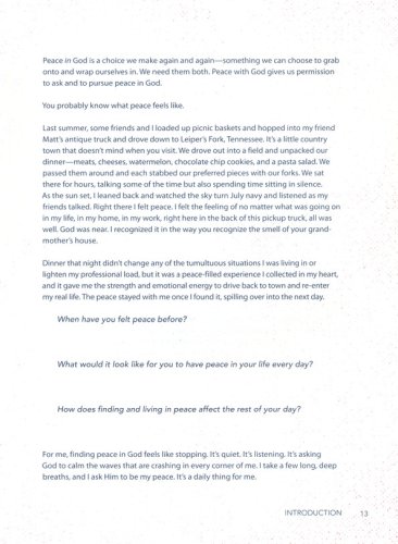 Group material with guides to questions and discussion within small groupsPersonal study segments to complete between group sessionsOpportunity for 7 group sessions with 6 weeks of personal study and homeworkStudent version available for teen girlsBenefits:Discover beauty in the mundane and difficult moments of lifeEncourage a more personal relationship with God as you discover scriptural truthsGrow spiritually through individual study time and group sessionsUnderstand God sometimes calls us to do hard, but ultimately rewarding, tasksLearn to laugh through times of perseverance and discover the beauty of the journeyTrust God’s timing as He makes everything beautiful in His timeWrap yourself in the peace of God and allow Him to carry you at all times