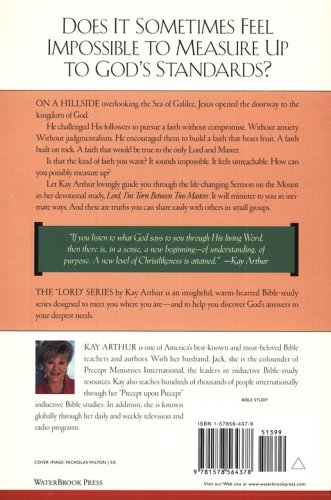 Let Kay Arthur lovingly guide you through the life-changing Sermon on the Mount in her devotional study, Lord, I'm Torn Between Two Masters. It will minister to you in intimate ways. And these are truths you can share easily with others in small groups.
