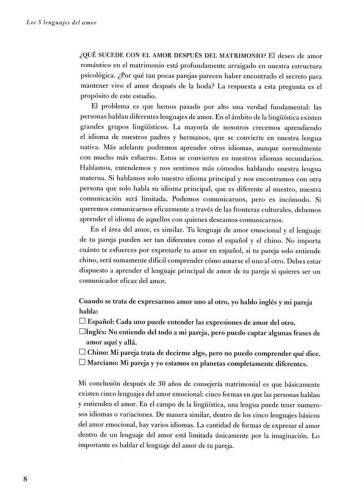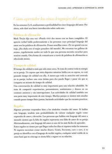 Preparar a las parejas para aprender a hablar el lenguaje del amor.Descubrir cada uno de los cinco lenguajes del amor mientras aprendes cómo expresar mejor el amor por tu cónyuge.Crecer espiritualmente al profundizar en las Escrituras y ampliar tu comprensión del diseño de Dios para el amor en el matrimonio.Desarrollar e implementar estrategias matrimoniales prácticas y con propósito.