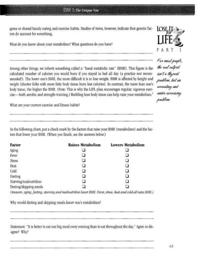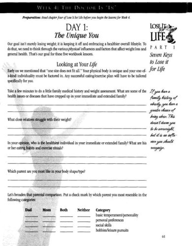 Lose It For Life is truly the total solution for permanent weight loss. And the Lose It For Life Workbook is the perfect companion to help you maintain your results permanently! It contains even more of the information and motivation you need to live healthy, look good, and to finally . . . Lose It For Life!