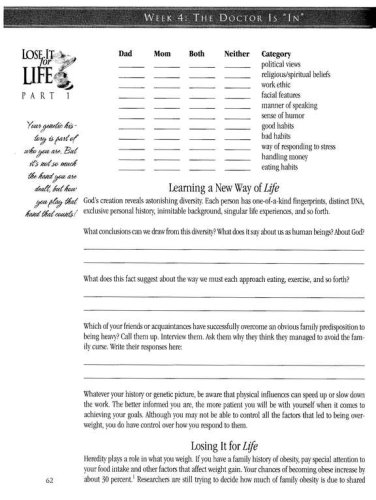 Yet you are more than a physical being. You want a holistic approach to health that doesn't stop at "physical" fitness. Lose It For Life is your answer–a uniquely balanced program that deals with the physical, emotional, and especially the spiritual elements that lead to permanent weight loss.