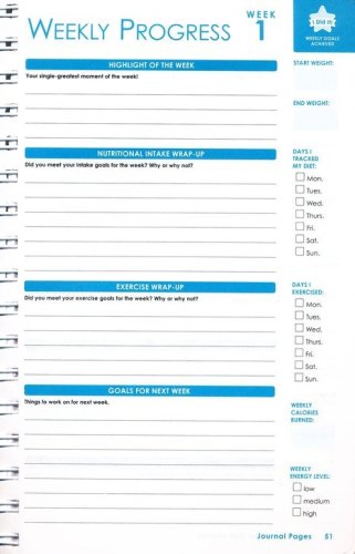In addition to its compact size, this book includes room to record daily food and beverage intake; document exercise, supplements, weight, and energy levels; daily nutrition and fitness tips; monthly wrap-up pages with space for a photo and measurements to track weight-loss progress; motivational stickers; fold-out progress chart; mini removable journal; and updated nutritional information on popular foods, and more.