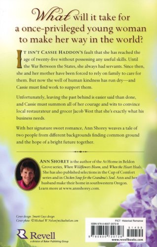 It wasn't Cassie Haddon's fault that she had managed to reach the age of twenty-five without possessing any useful skills. Until the war, she had always had servants to wait on her. Since then, she and her widowed mother had moved from place to place, relying on family to care for them. Now she's forced to find work to support them both. What isn't in her plans is falling for Jacob West, a local restaurateur and grocer. She needs a job and he needs help. But what they both need is love.