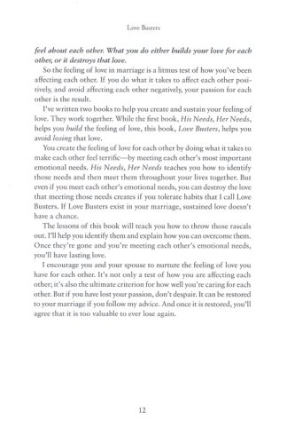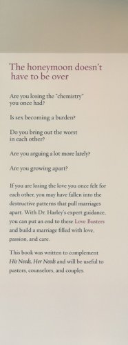 With Dr. Harley's expert guidance, couples will be able to avoid the major causes of marital unhappiness and disappointment. Instead of tearing their marriage apart, they will learn to build it into the marriage they had needed and wanted. This book is a perfect companion to His Needs, Her Needs and will be useful to pastors, counselors, and couples.